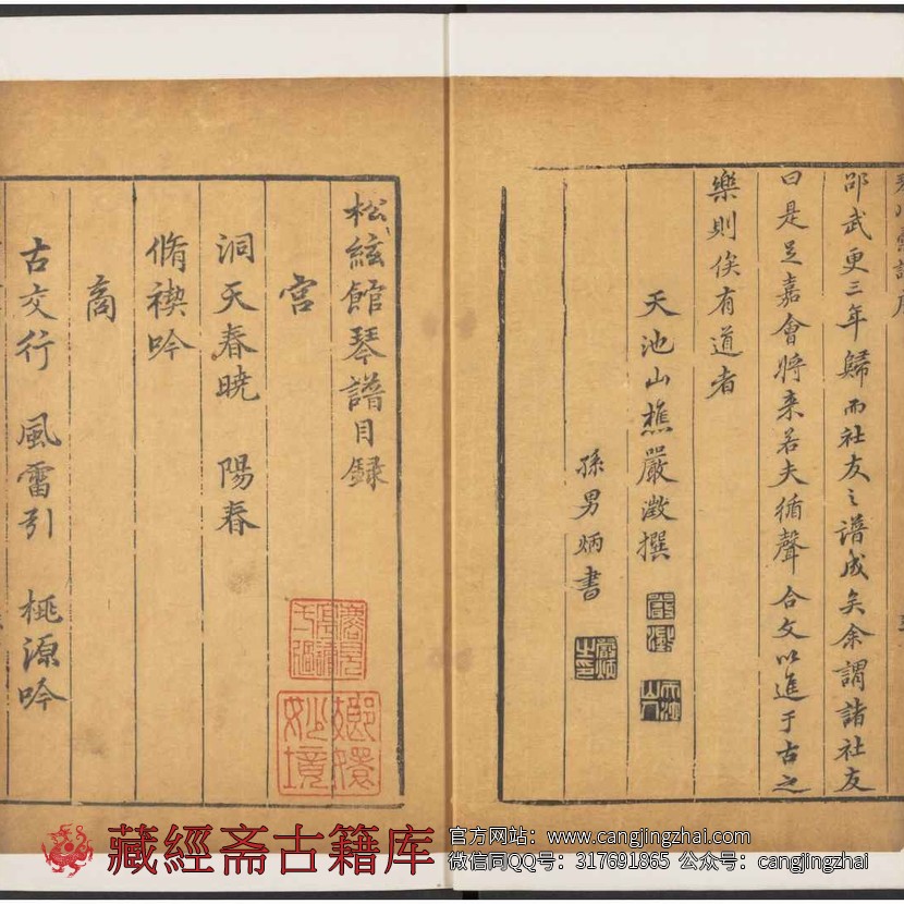 松弦馆琴谱序(薛志学撰)、附琴川汇谱序(严澂撰)、目录、观谱法