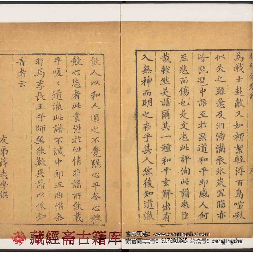 此《松弦馆琴谱》由明末古琴家严澂集。全书分为:宫、商、角、徵、羽、商角,收琴曲28曲。这是《四库全书》收录的唯一明代琴谱,是虞山琴派的代表性琴谱。其琴学理念主张古琴应发挥音乐本身的表现力,不必借助文词而苛求浮华。此为清顺治十三年严炳修补刊本。
