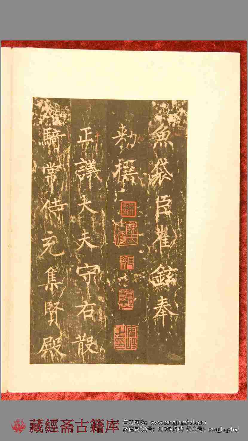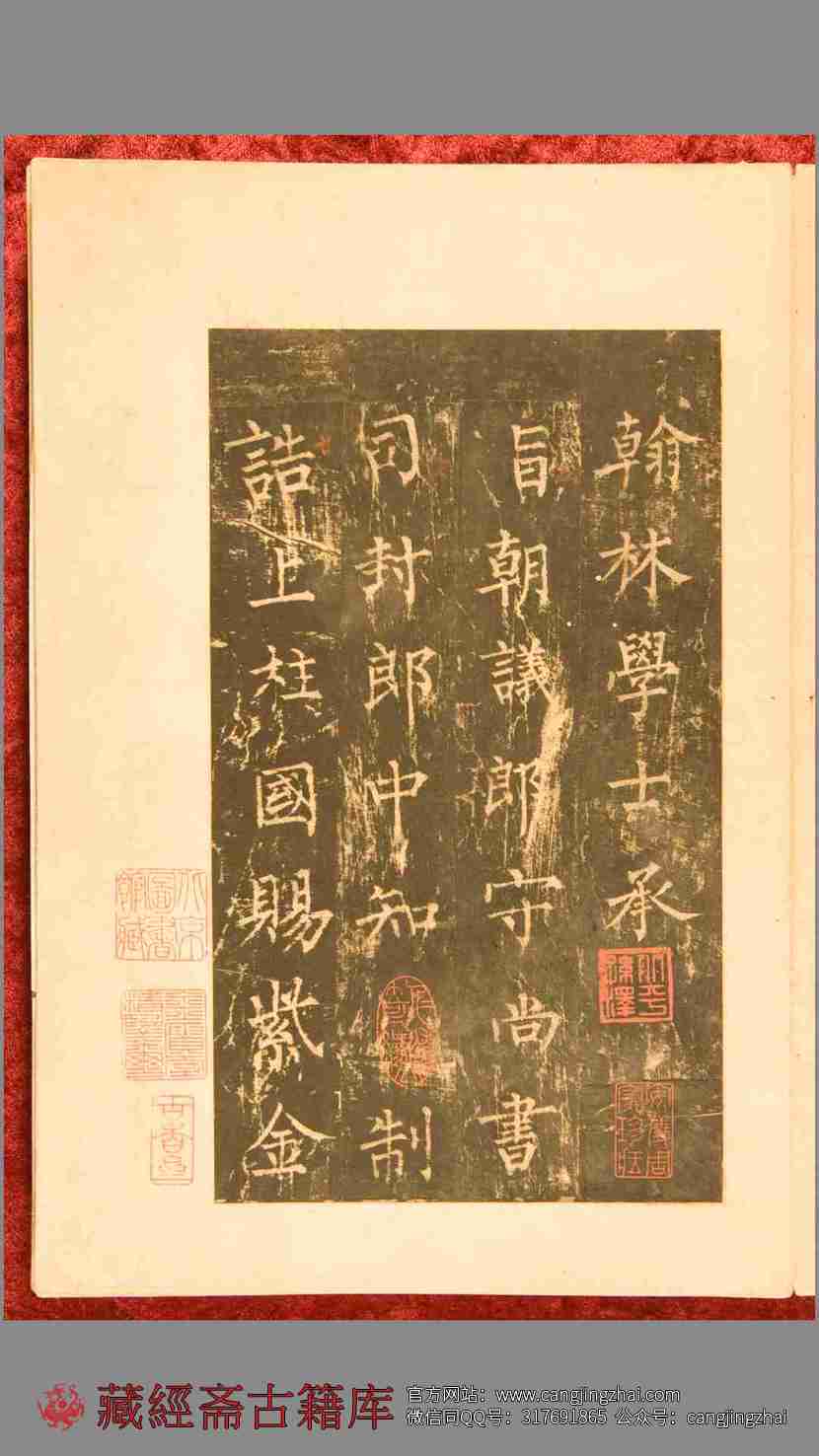 唐拓本已装裱成上下二册,下册早已失传,原石早已不见了。现在海内外仅存一册宋代的拓本,世称宋拓孤本。有南宋贾似道、元瀚林国史院、明晋王朱钢等藏印。清代经孙承泽、安岐等人递藏。此碑拓曾一度流于香港,1965年,周恩来总理特批,以重金购回,入藏北京国家图书馆,因其罕见的文物价值和艺术价值,被国家图书馆尊为镇馆之宝。